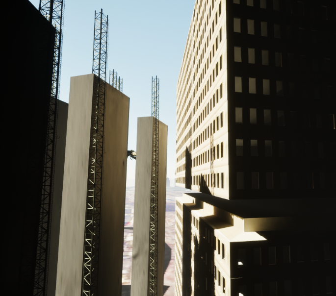 Posthuman urban time-trial with tight jumps and grapple slingshots